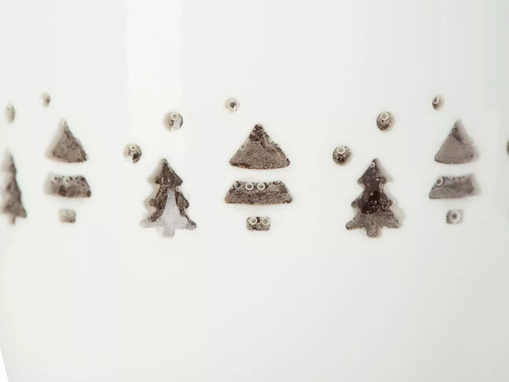 Эффектная особенность этой кружки - узор с эффектом рисового зерна, в котором отверстия в фарфоре заполнены прозрачной глазурью. Это уникальная древнекитайская техника, которая дает и кружке, и напитку буквально светиться изнутри. Twinkling Trees станет необычным и запоминающимся новогодним мерчем, благодаря узору на кружке, - елочки и снежинки за счет прозрачности приобретут цвет напитка. Костяной фарфор легче обычного и позволяет создавать изящную и тонкостенную посуду. - легкая и элегантная кружка; - объем 400 мл; - эффект рисового зерна”; - для любителей красивой и необычной посуды. Внимание, товар с нанесением не рекомендуется мыть в посудомоечной машине. Рекомендуется мыть изделия при температуре не выше 40 градусов, а также необходимо использовать качественные моющие средства соответствующие материалу изделия. Для мытья изделий с нанесениями не рекомендованы моющие средства, содержащие абразивные вещества. Тампопечать (1 цвет (белые изделия)) на данный товар осуществляется бесплатно. Оплачивается только настройка оборудования в размере 7300 рублей на весь тираж.
