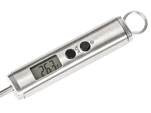 Steak — кулинарный термометр, который не даст вам ошибиться во время готовки! С ним все блюда будут поданы в нужной кондиции, а стейки — прожарены ровно настолько, насколько вам нужно — просто воткните острие термометра в пищу, и на электронном табло появится температура. - нержавеющая сталь - температура использования: от -50 до +300℃ - работает от батарейки LR44 (в комплекте) - ручка для подвешивания Гравировка (оптоволоконный лазер) (Без чернения) на данный товар осуществляется бесплатно. Оплачивается только настройка оборудования в размере 1100 рублей на весь тираж.