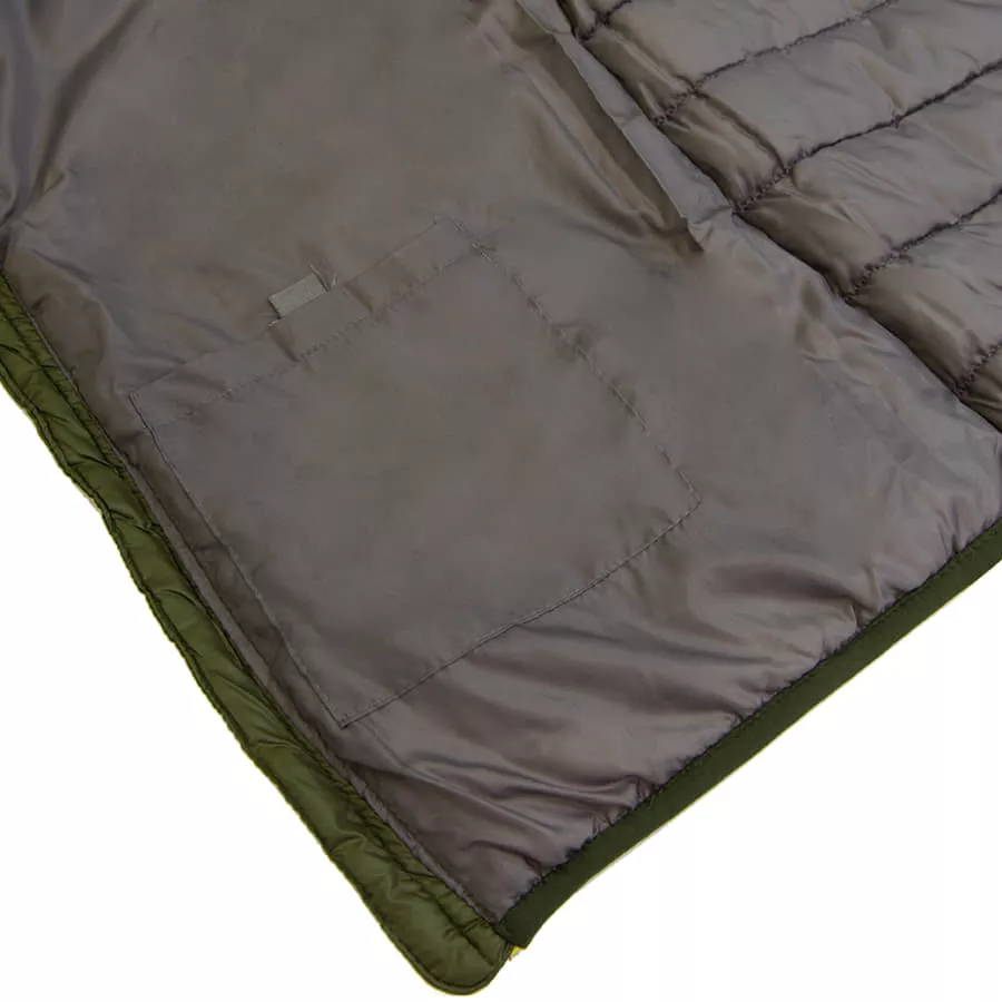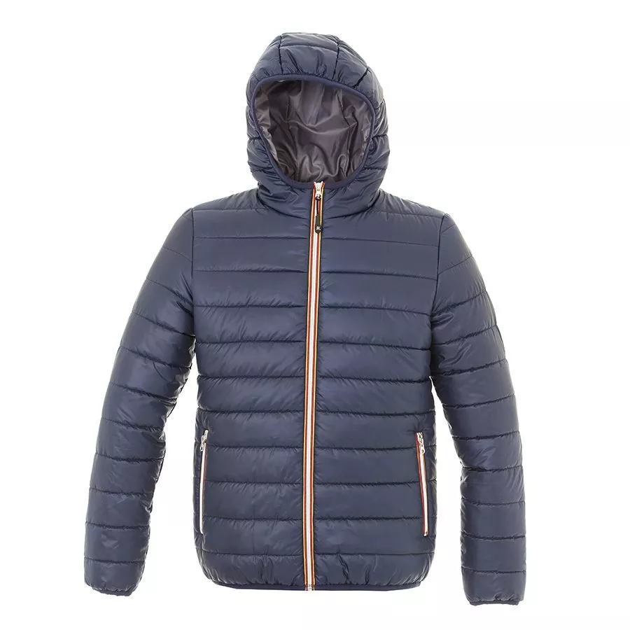 Основная ткань: цвет, близкий к Pantone 5395 U, подкладка: цвет, близкий к Pantone 424 C Мягкая и легкая куртка из нейлона. Контрастная облегченная пластиковая молния со съемным пуллером. Два кармана на молнии. Внутренний карман на липучке. Манжеты рукавов, капюшон и низ куртки обрамлены эластичной резинкой.