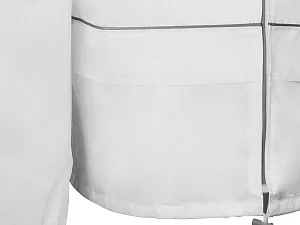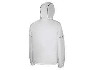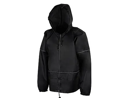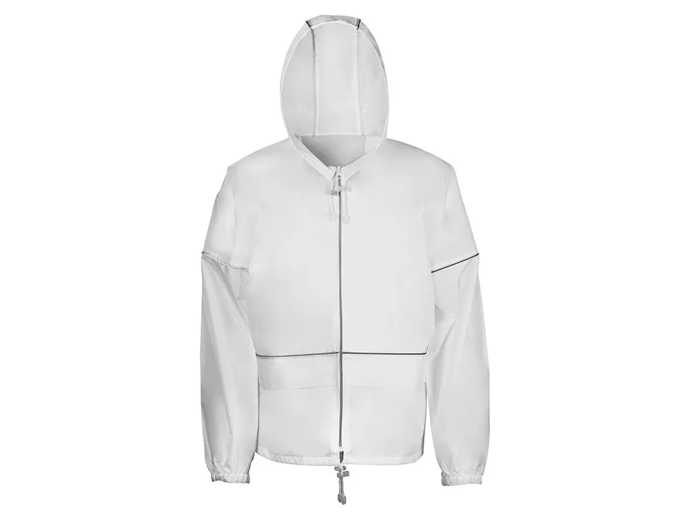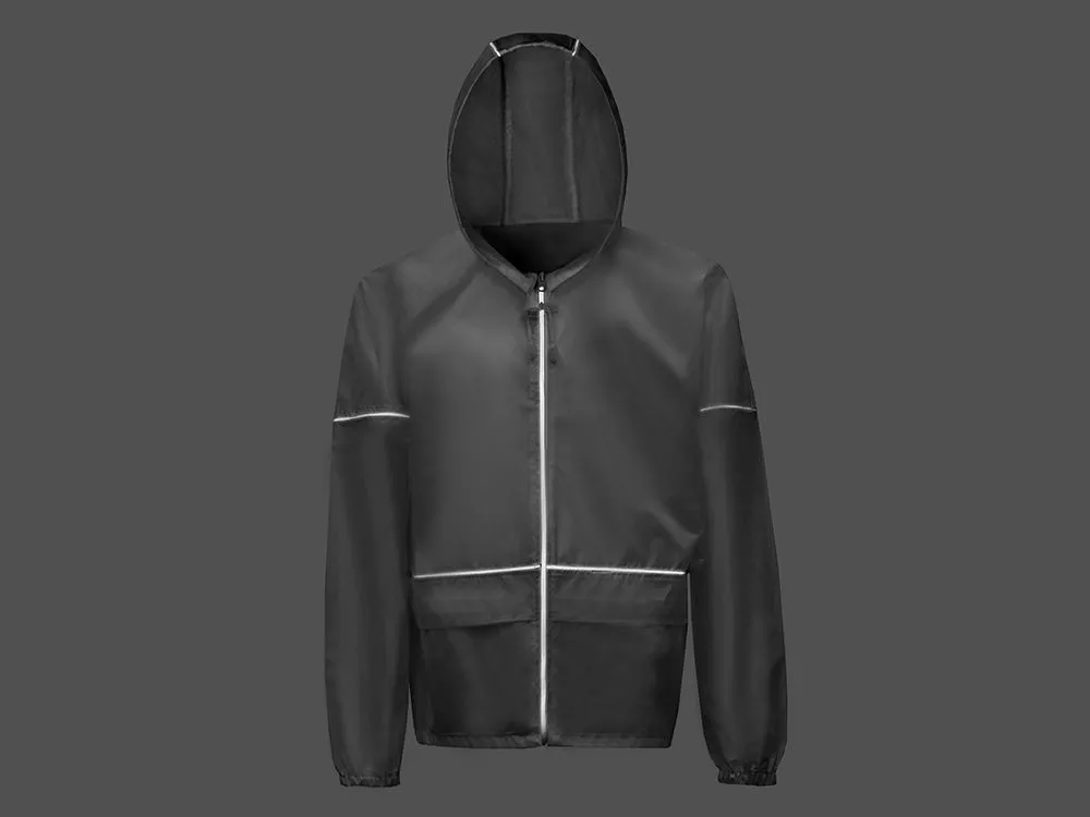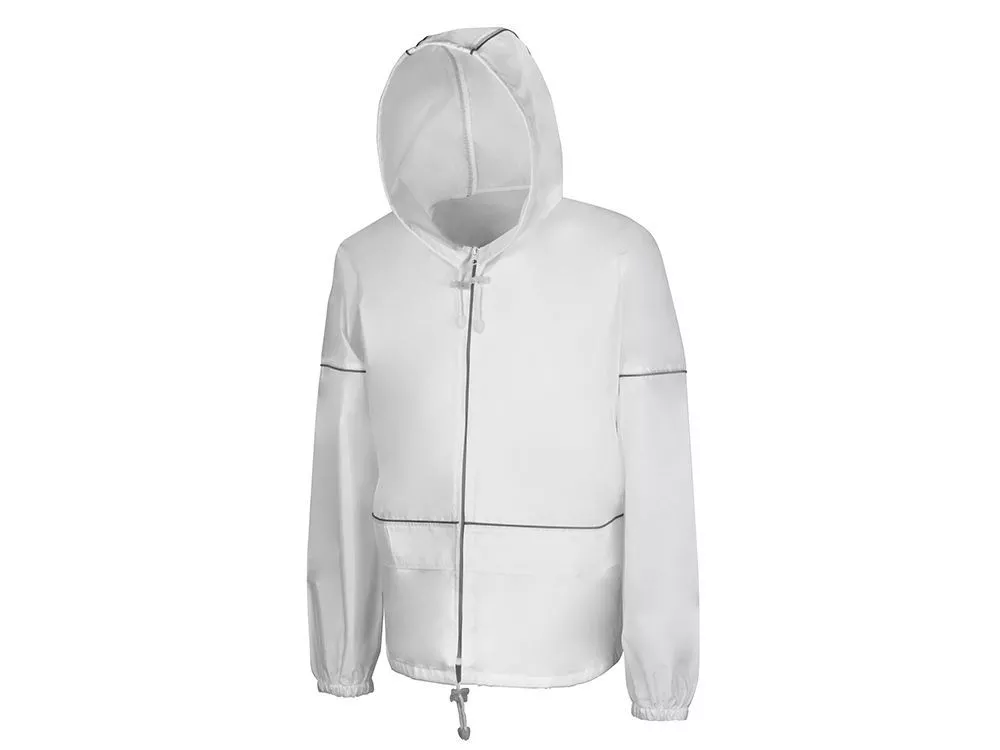 Короткий дождевик прямого силуэта с капюшоном и карманами. Вместительные накладные карманы защищены сверху клапанами, по верхней кромке которых вшит светоотражающий кант. Светоотражающие элементы также расположены на рукавах, капюшоне и молнии, что делает человека заметным даже в темное время суток. Капюшон и низ дождевика затягиваются на шнурки с фиксаторами, что позволяет отрегулировать посадку по фигуре. Манжеты дождевика — на резинке. Поставляется в чехле-мешочке на шнурке для компактного хранения. Трафаретная печать (1 цвет (белые изделия)) на данный товар осуществляется бесплатно. Оплачивается только настройка оборудования в размере 5100 рублей на весь тираж.