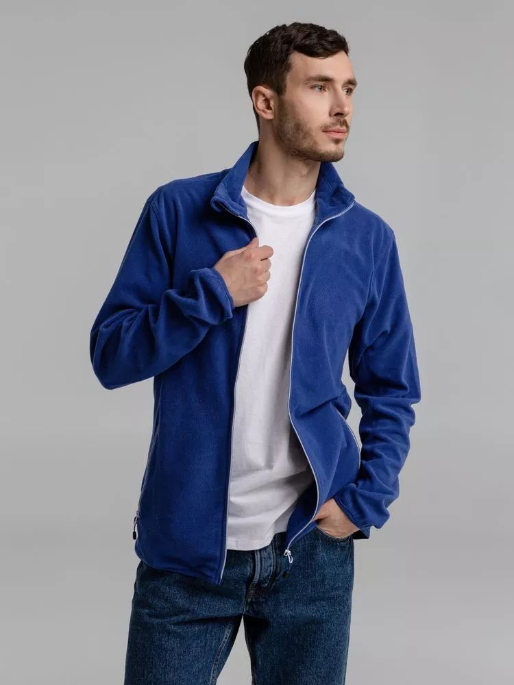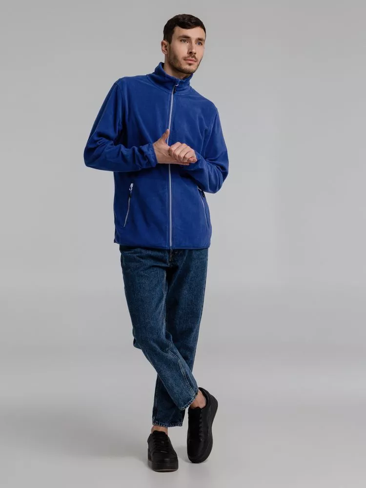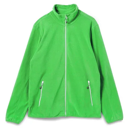 Толстовка из микрофлиса. Передние карманы на молнии, манжеты и низ куртки на тонкой резинке, застежка-молния контрастного цвета.