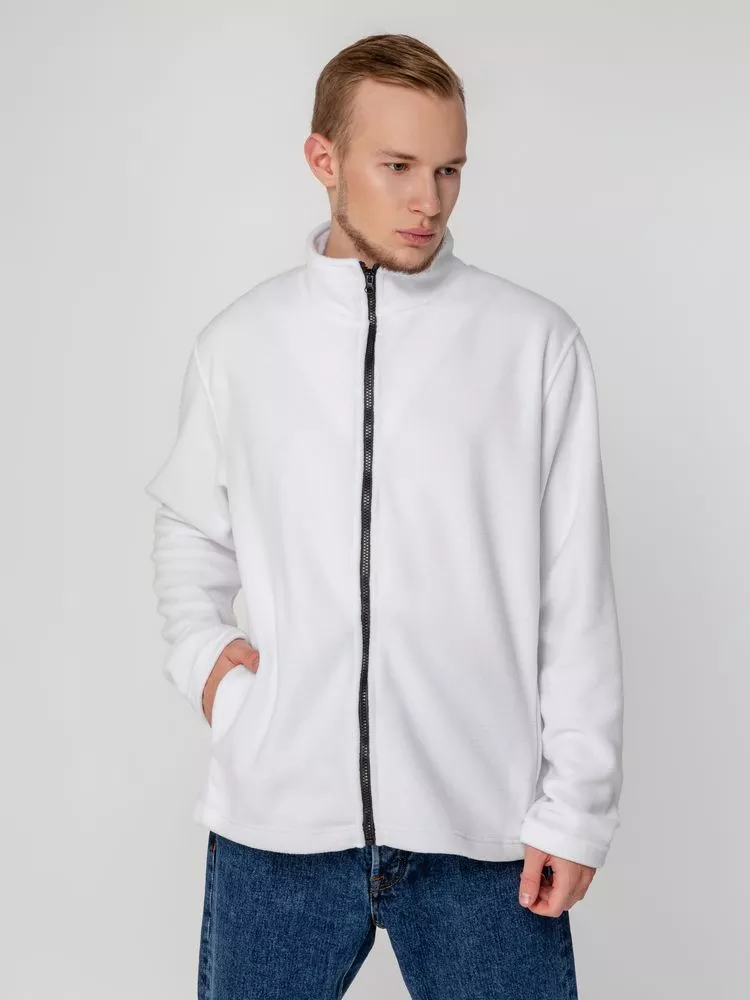 Куртка унисекс из флиса с застежкой-молнией и воротником-стойкой.