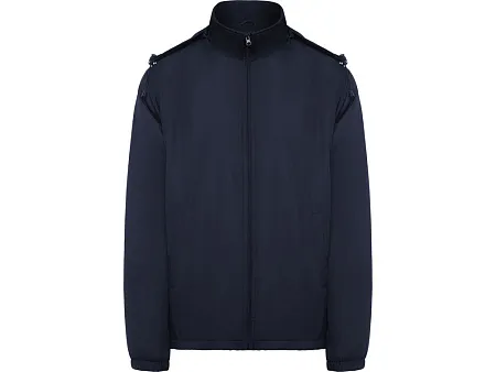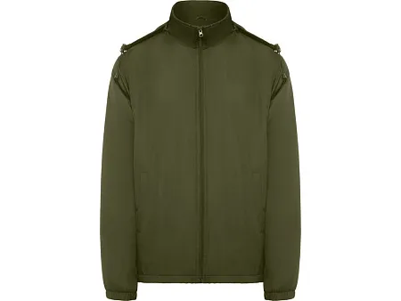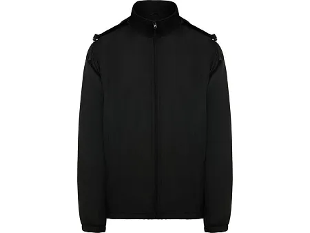 Легкая водонепроницаемая куртка. · Высокий воротник и складывающимся капюшоном с регуляторами. · Подкладка из микрофлиса. · Центральная застежка·молния и защита для подбородка. · Эластичные манжеты. · Два боковых кармана на застежке·молнии. · Внутренний левый нагрудный карман.