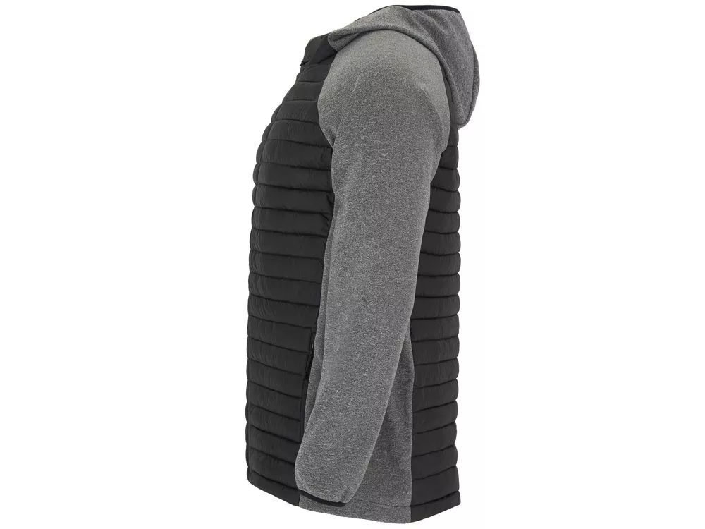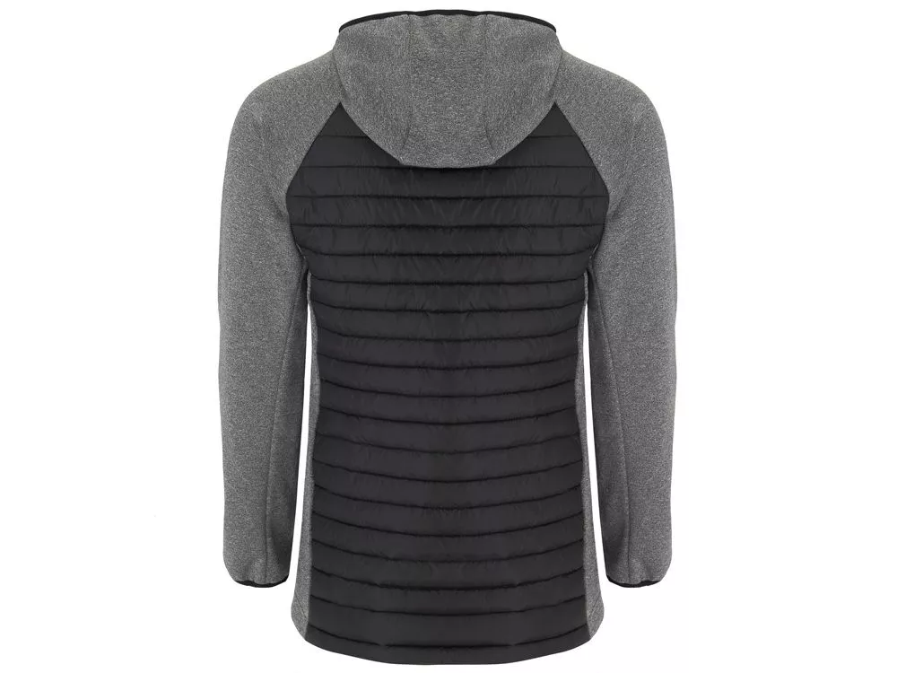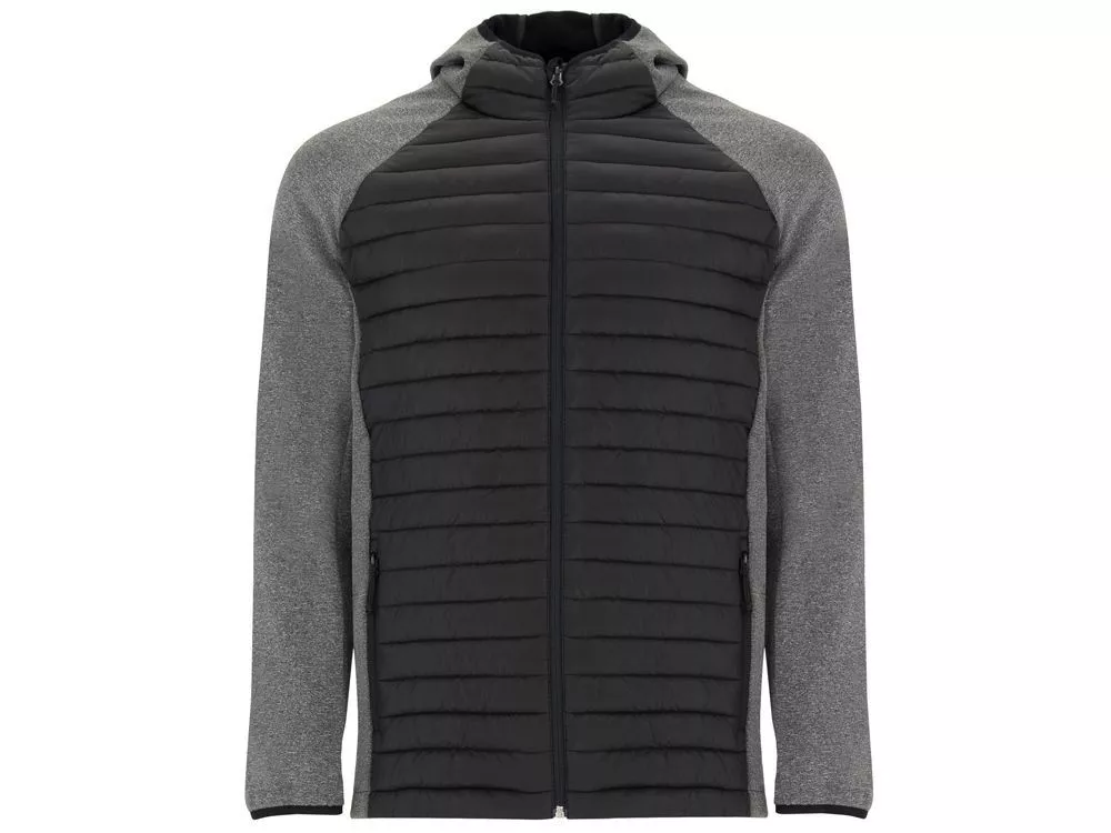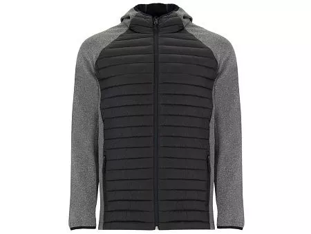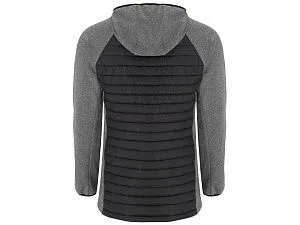 Мужская куртка из двух комбинированных тканей. - Несъемный регулируемый капюшон. - Рукава реглан. - Ткань softshell на рукавах, боковых вставках и капюшоне. - Стеганая ткань с утеплителем спереди и сзади. - Молния в тон с бегунком и защитой для подбородка. - Два кармана спереди с молнией. - Воротник, манжеты и низ с эластичной окантовкой в тон.