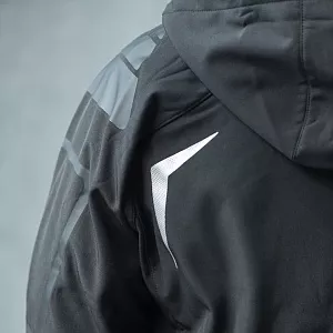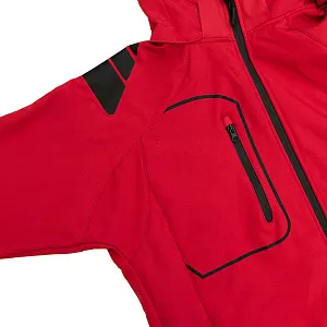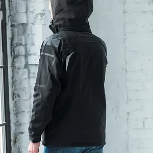 Основная ткань: цвет, близкий к Pantone 7636 C, подкладка: цвет, близкий к Pantone 201 C · Трехслойный водонепроницаемый и ветрозащитный softshell: Нижний слой поглощает излишнюю влагу тела Средний слой (непродуваемая ветром мембрана с высокой паропроницаемостью) сохраняет тепло и передает испарения внешнему слою Внешний слой отдает влагу наружному воздуху, одновременно защищая тело от дождя и ветра · Показатели мембраны: Водонепроницаемость 6000 мм Ветрозащитность 4000 г м² 24ч · Покрой рукава-реглан дополнительно защищает от ветра и влаги · Три передних кармана с обратной молнией лазерного кроя с водозащитным покрытием · Съемный капюшон · Регулируемые манжеты на застежке-липучке · Дополнительный карман на плечевой части рукава · Внутренний карман на молнии · Утягивающий шнурок по низу куртки · Светоотражающие элементы на передней и задней части куртки