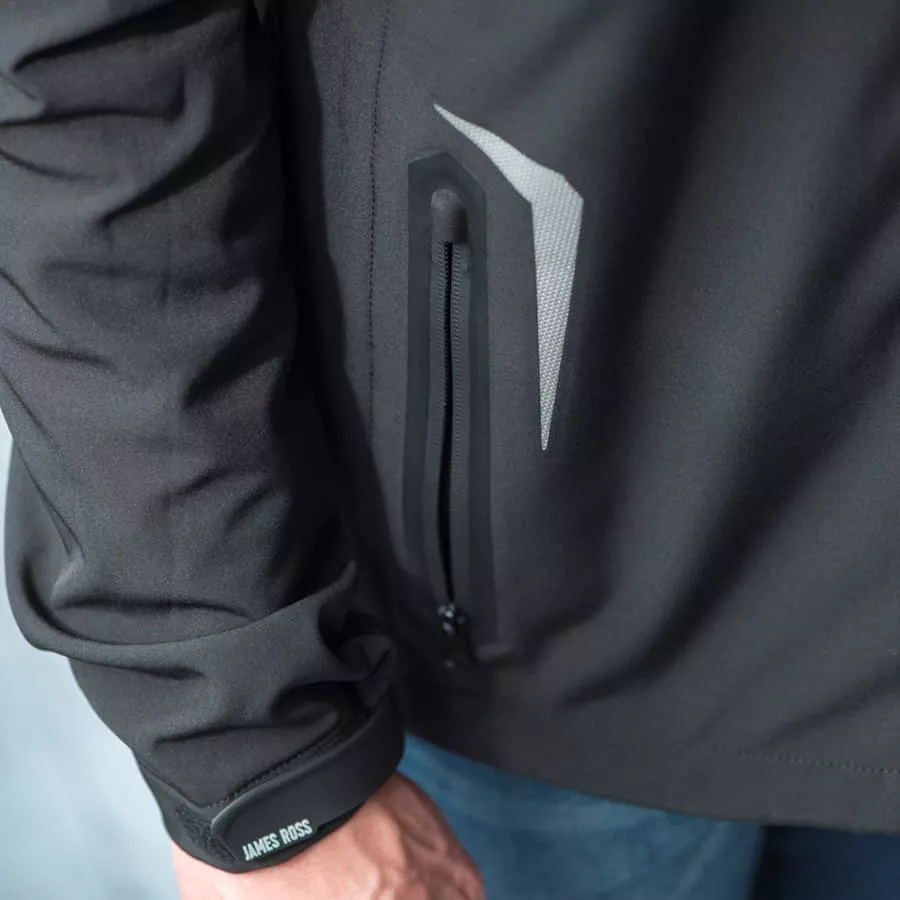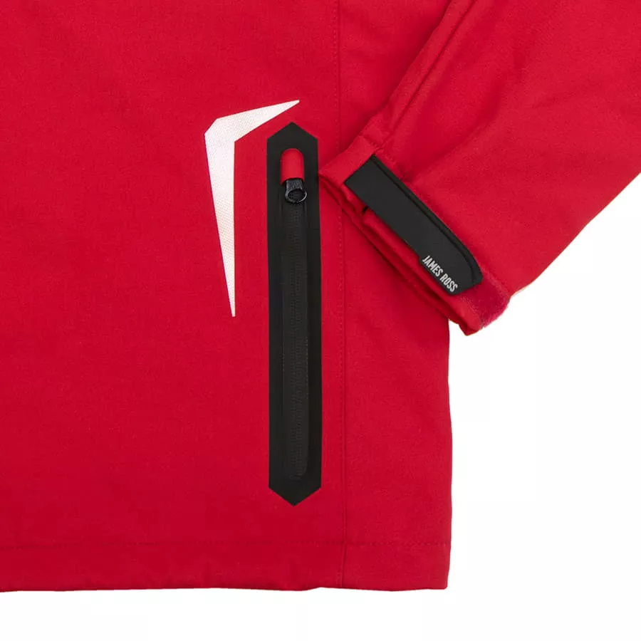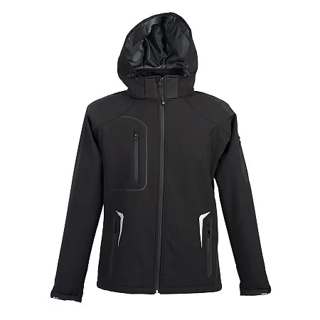 Основная ткань: цвет, близкий к Pantone 7636 C, подкладка: цвет, близкий к Pantone 201 C · Трехслойный водонепроницаемый и ветрозащитный softshell: Нижний слой поглощает излишнюю влагу тела Средний слой (непродуваемая ветром мембрана с высокой паропроницаемостью) сохраняет тепло и передает испарения внешнему слою Внешний слой отдает влагу наружному воздуху, одновременно защищая тело от дождя и ветра · Показатели мембраны: Водонепроницаемость 6000 мм Ветрозащитность 4000 г м² 24ч · Покрой рукава-реглан дополнительно защищает от ветра и влаги · Три передних кармана с обратной молнией лазерного кроя с водозащитным покрытием · Съемный капюшон · Регулируемые манжеты на застежке-липучке · Дополнительный карман на плечевой части рукава · Внутренний карман на молнии · Утягивающий шнурок по низу куртки · Светоотражающие элементы на передней и задней части куртки