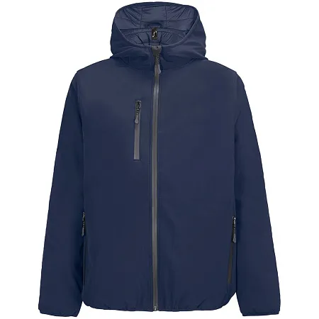 Мужская куртка софтшелл на молнии и с капюшоном.