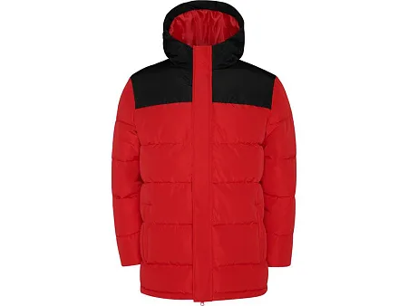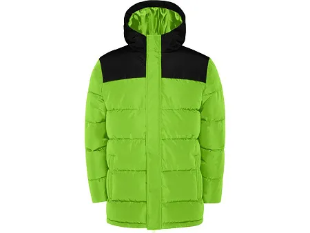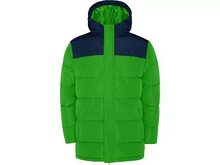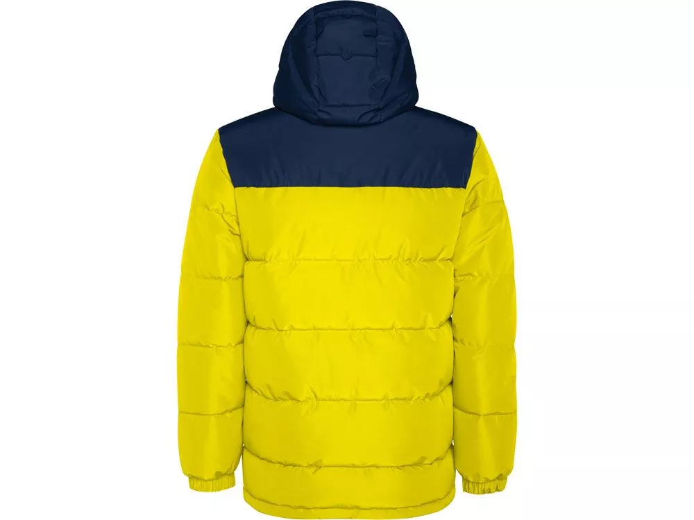 Утепленная куртка с капюшоном · передняя молния закрывается планкой · защита для подбородка · два боковых кармана на молнии · эластичный манжеты · специальный доступ для нанесения на спинке