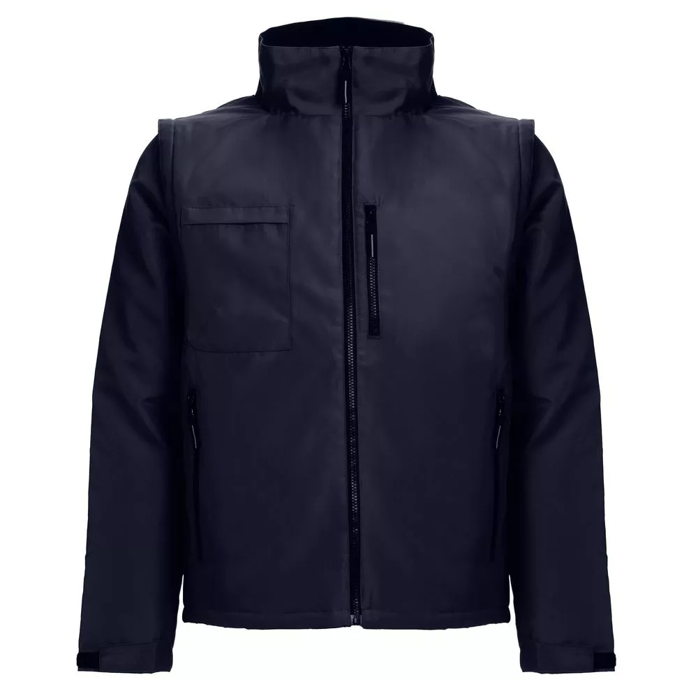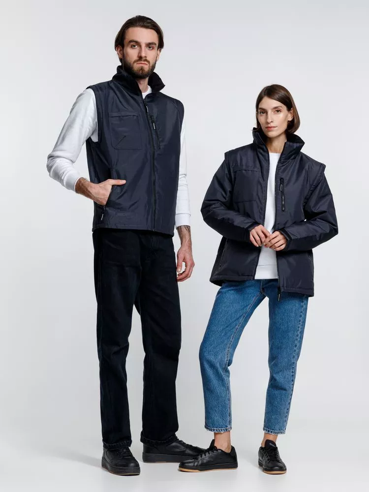 Куртка-трансформер, которая превращается в утепленный жилет. Выполнена из ткани оксфорд с водоотталкивающим покрытием. Модель унисекс.