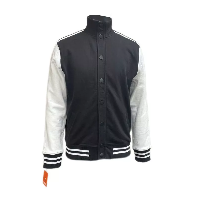 Куртка Varsity . Контрастная цветная окантовка на воротнике и рукавах. Карманы для рук. Фирменная нашивка на рукаве. Фирменные кнопки. Плоский вязаный воротник. Плоские вязаные манжеты. Плоский вязаный ребристый низ. Основная этикетка с теплопередачей для комфорта без бирок. Трикотаж френч терри из 100% хлопка. 420 г/м². Трикотаж френч махровый из 100% хлопка, 420 г/м2.