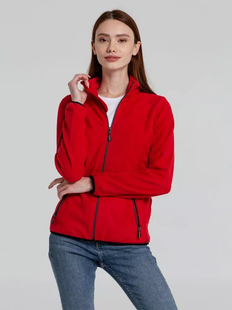 Женская флисовая толстовка с застежкой-молнией и двумя передними карманами на молниях. Декоративные плоские швы. Есть возможность подобрать цвет пуллеров для максимального соответствия визуальному стилю фирмы.