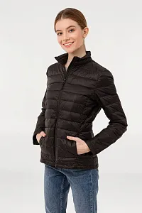 Легкая стеганая куртка облегающего кроя на молнии с воротником-стойкой.