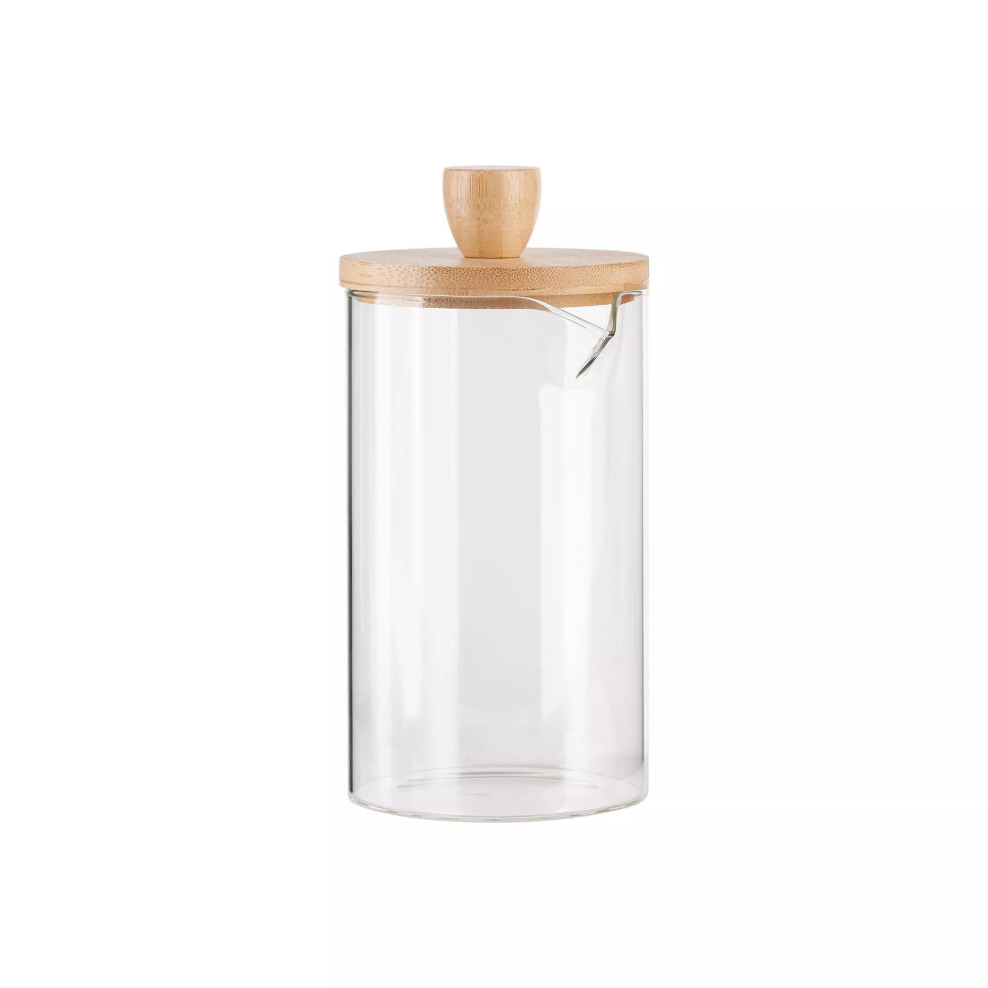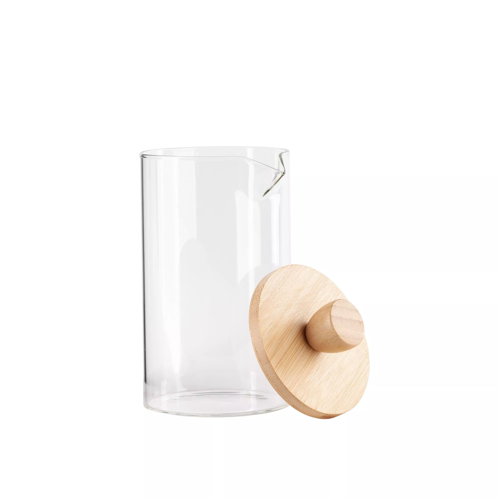 Кувшин 600 мл из боросиликатного стекла с бамбуковой крышкой. Подойдет для воды, декора, хранения непищевой продукции.