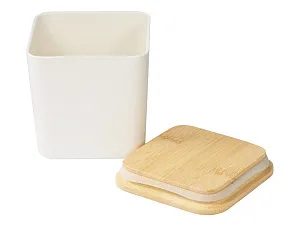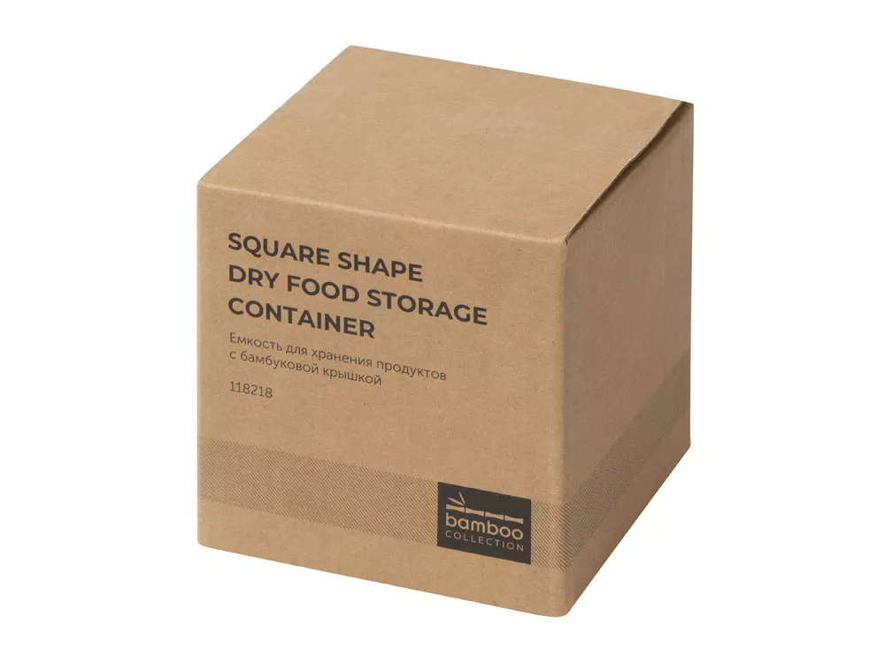 Квадратная ёмкость для хранения с бамбуковой крышкой изготовлена на 75% из натуральных материалов. Она подходит для хранения продуктов бакалеи: чая, кофе, сахара, соли и пряностей, круп и макаронных изделий, а также орехов и сухофруктов. Контейнер абсолютно герметичен благодаря силиконовому уплотнителю по периметру крышки, что позволяет чаю, кофе и вашим любимым специям не потерять свой аромат. Эргономичная квадратная форма поможет сэкономить место, если его и так немного. Натуральный бежевый цвет будет прекрасно смотреться в любом интерьере, а бамбуковая крышка создаст дополнительный уют. С этой и другими баночками из коллекции Bamboo collection вы сможете не только удобно, но и очень стильно организовать пространство на кухне. - Экологичные материалы, крышка из бамбука - Герметичность - Эргономичная форма - Ёмкость можно мыть в посудомоечной машине, но не стоит использовать в микроволновке Гравировка (CO2 лазер) (Без чернения) на данный товар осуществляется бесплатно. Оплачивается только настройка оборудования в размере 923.08 рублей на весь тираж.