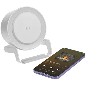 Устройство moonLight — это настольная лампа с bluetooth-колонкой и беспроводной зарядкой, также может служить в качестве ночника на прикроватном столике.