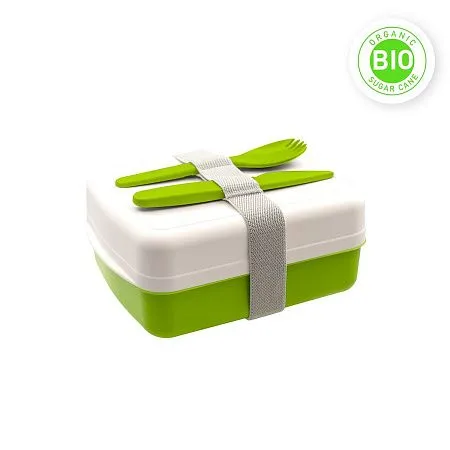 "Компактный и практичный ланч-бокс для сэндвичей и вторых блюд, отлично сохраняет свежесть и вкус любимой еды. Ланч бокс изготовлен из органического материала на основе сахарного тростника и не содержит вредных веществ, поэтому его можно разогревать в микроволновке без опасений для здоровья. Контейнер удобно брать с собой на работу, учебу или в путешествие. В комплекте столовые приборы, которые крепятся с помощью эластичного ремня.