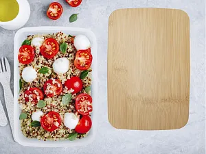 Пищевой контейнер Mangi изготовлен из переработанного пластика и имеет емкость 750 мл. Он оснащен бамбуковой крышкой и эластичной лентой, которая удерживает крышку на месте, гарантируя, что содержимое останется свежим. GRS certified recycled plastic, FSC certified bamboo.
