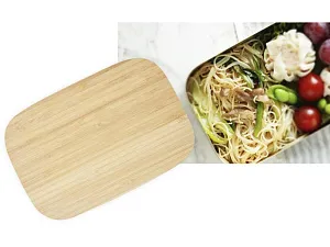 Контейнер для обеда из нержавеющей стали объемом 700 мл оснащен бамбуковой крышкой с силиконовым уплотнением для правильного закрытия. Поставляется с эластичной лентой, которая удерживает крышку надежно на месте когда вы находитесь в дороге. Используемый бамбук поставляется и производится в соответствии со стандартами устойчивого развития. Контейнер можно мыть в посудомоечной машине без крышки.
