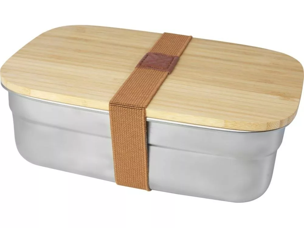 Контейнер для обеда из нержавеющей стали объемом 700 мл оснащен бамбуковой крышкой с силиконовым уплотнением для правильного закрытия. Поставляется с эластичной лентой, которая удерживает крышку надежно на месте когда вы находитесь в дороге. Используемый бамбук поставляется и производится в соответствии со стандартами устойчивого развития. Контейнер можно мыть в посудомоечной машине без крышки.