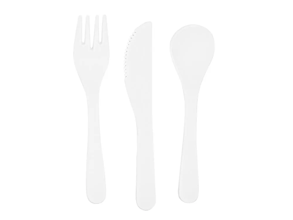 Ланч-бокс из PLA с силиконовым ремешком для регулировки. В комплекте вилка, ложка и нож. Емкость 1 л Наслаждайтесь едой в любом месте.