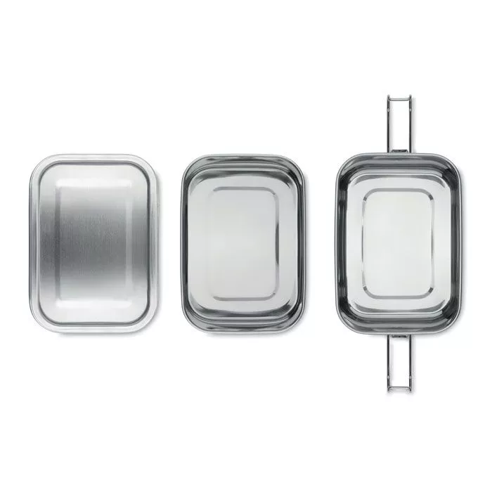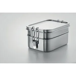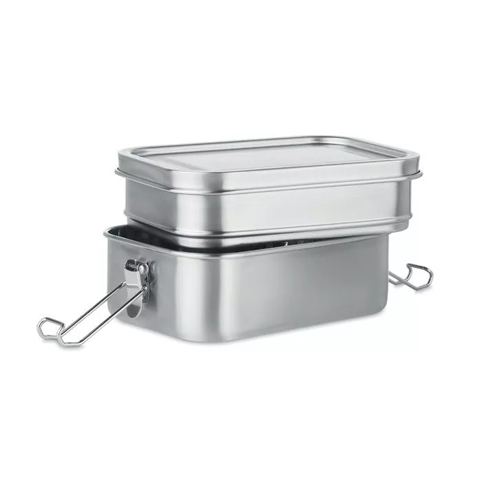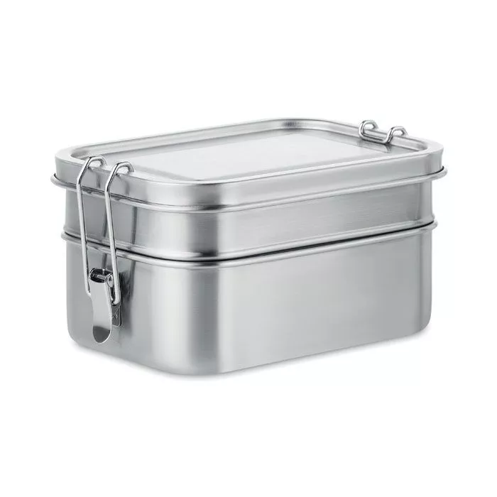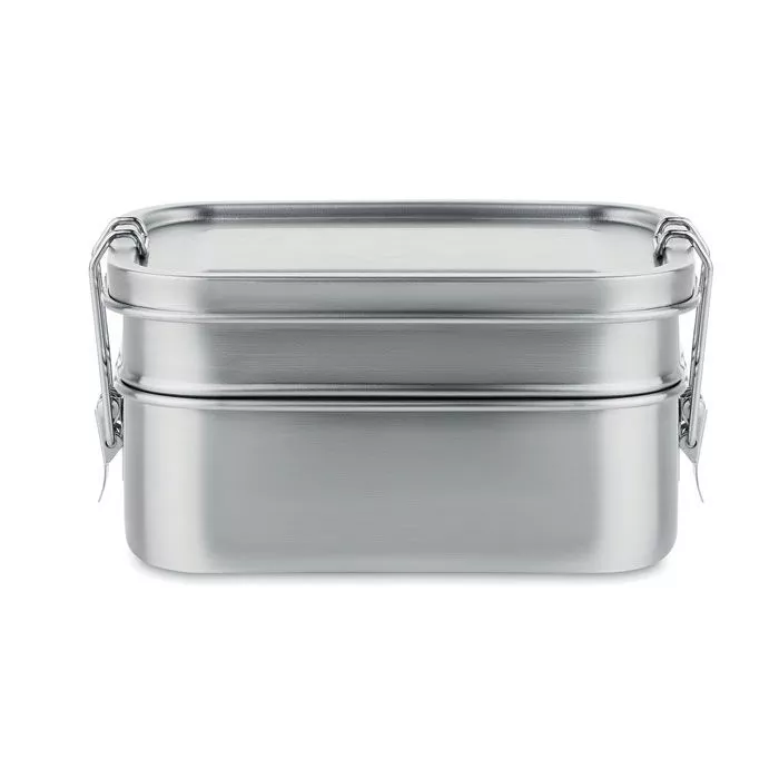 Ланчбокс из нержавеющей стали с 2 отделениями. Крышка плотно застегивается боковыми зажимами. Емкость 1200 мл.