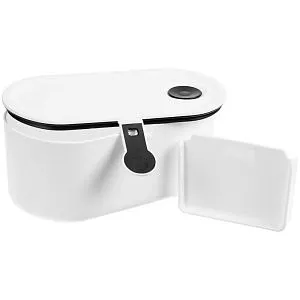 Вместительный ланчбокс со съемным разделителем. Дизайн с контрастными деталями поможет быстрой найти свой обед на полке рабочего холодильника.