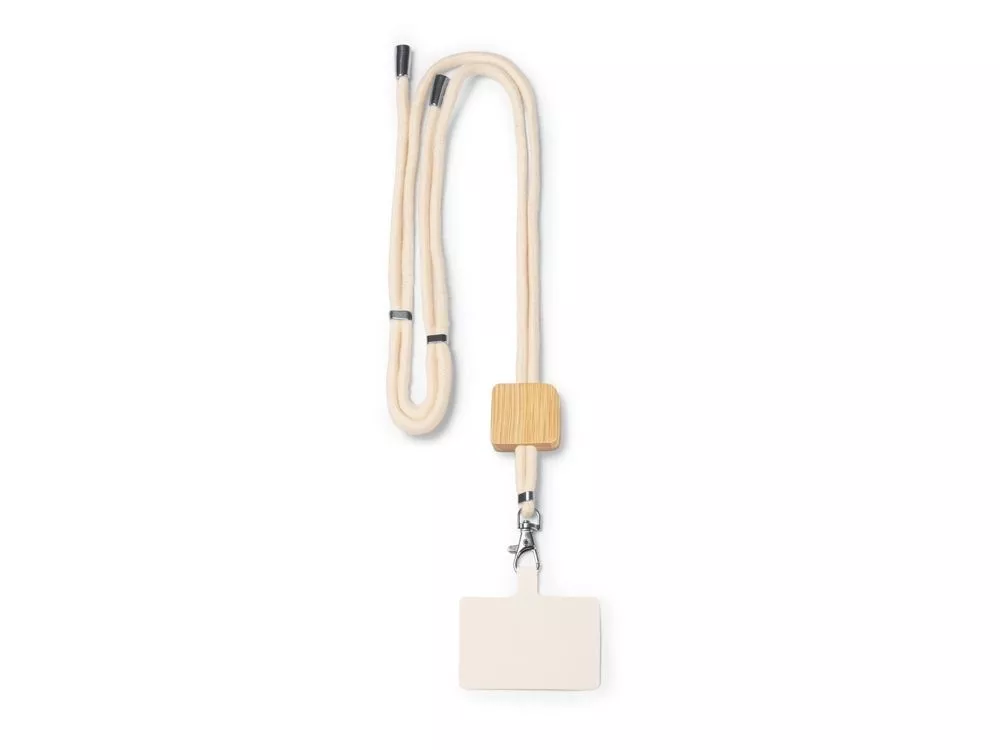 Шнурок-держатель для мобильного телефона из хлопка с бамбуковыми вставками и системой регулировки.