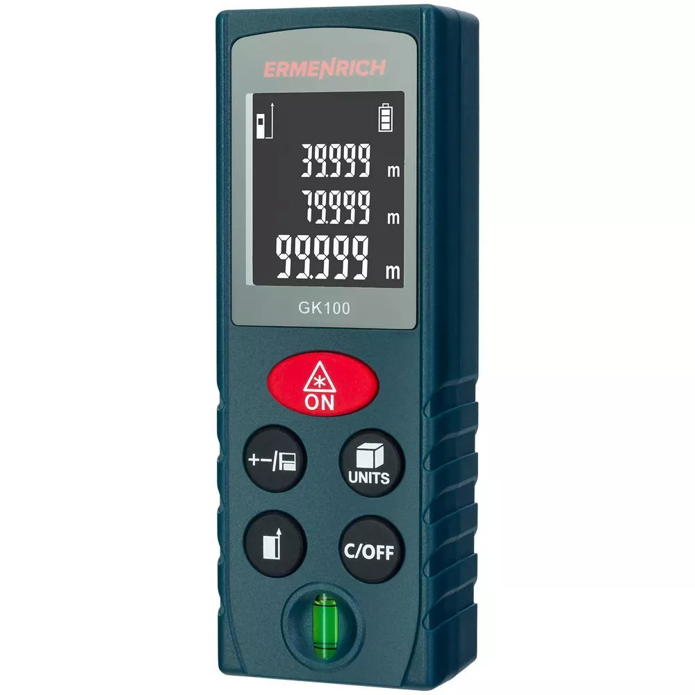 Ermenrich Reel GK100 — лазерная рулетка для самого широкого применения при измерении линейных размеров, площадей и объемов помещений, зданий и сооружений.