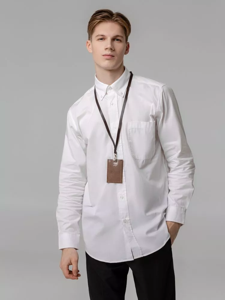 Кожаная лента с карабином для пропусков, бейджей или ключей.