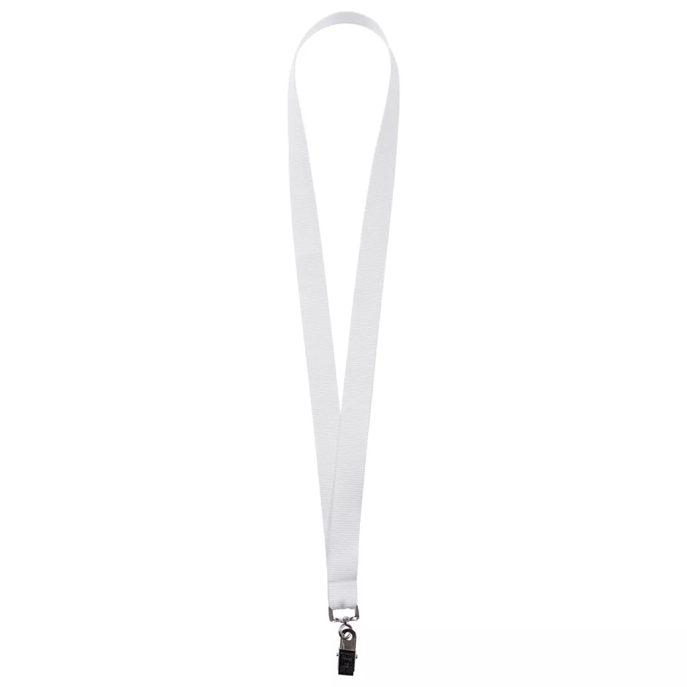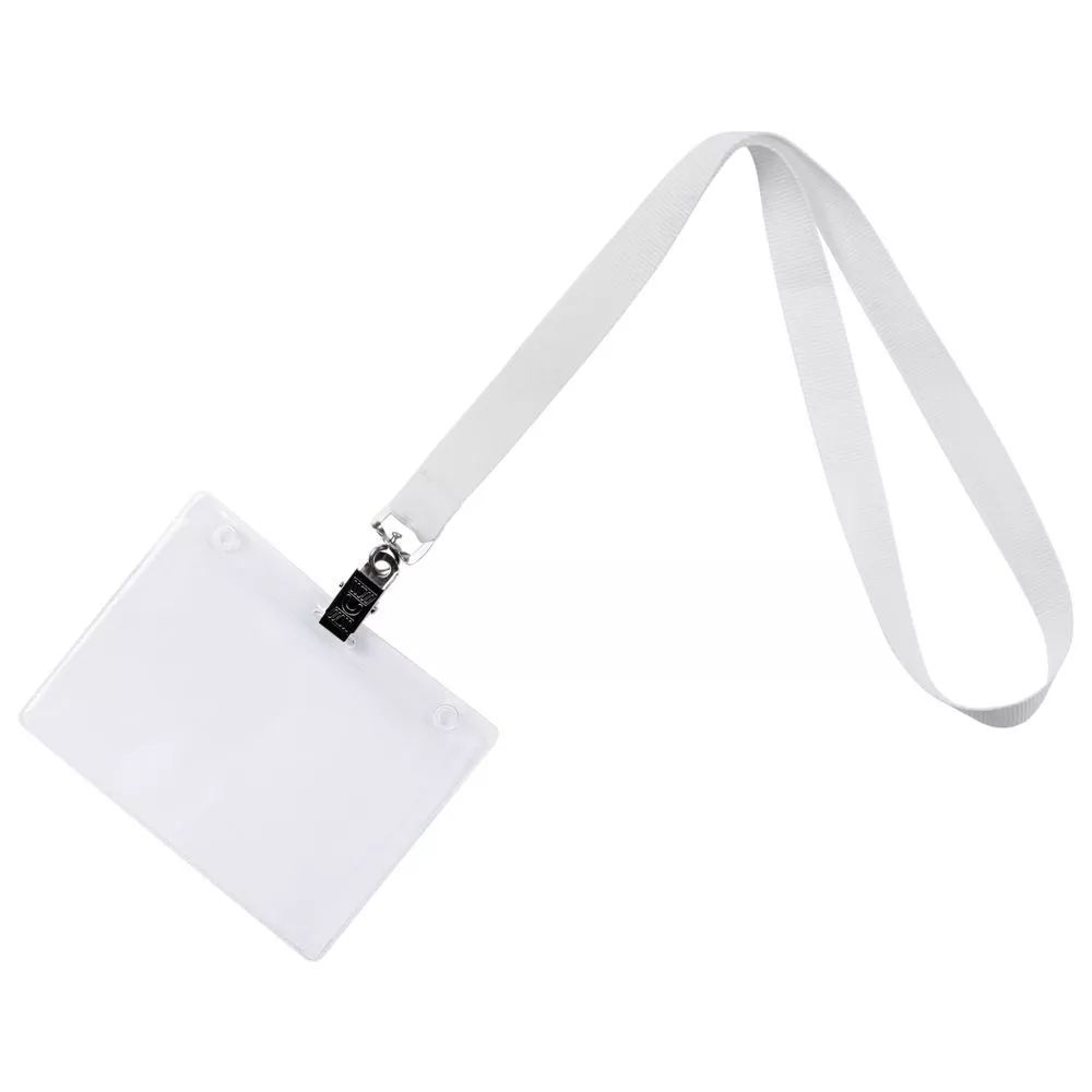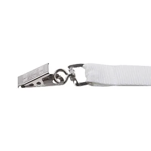 Бейдж крепится к ленте с помощью металлической клипсы.