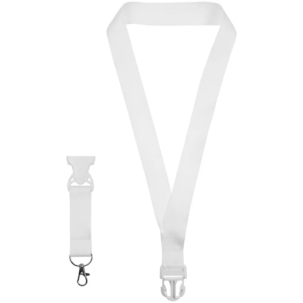 Лента для бейджа или пропуска с карабином и межъярусным замком. Такой замок позволит быстро отстегнуть часть ленты, чтобы приложить интерактивный бейдж или пропуск к считывателю, не снимая ленту через голову.