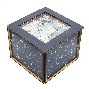Лес в снегу (квадратная, темная) - упаковка новогодняя из дерева