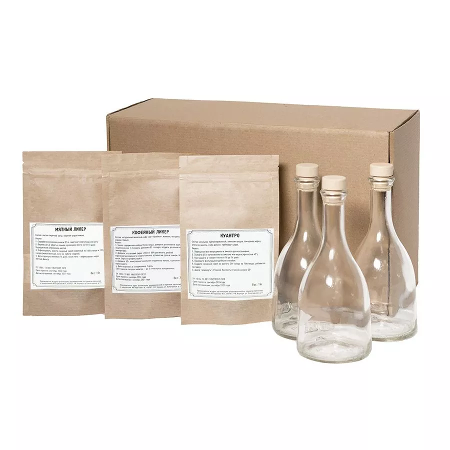 В состав набора входят сборы для приготовления трех видов ликеров: мятного, куантро и кофейного. Мятный ликер - один из самых душистых алкогольных напитков. Домашний мятный ликер обладает неповторимый яркий аромат и мягкий вкус. Прекрасный вариант к десерту, чаю или кофе. Состав: листья перечной мяты, сушеная цедра лимона. Куантро — французский крепкий прозрачный ликер с ароматом корочек сладких и горьких апельсинов и померанцев. Пьют Куантро сильно охлажденным до 4-6°C маленькими глотками из классических ликерных рюмок. Хорошо сочетается с охлажденным апельсиновым и грейпфрутовым соками в любых пропорциях. Состав: апельсин сублимированный, апельсин цедра, померанец корка, апельсин цветы, лайм дольки, грейпфрут цедра. Кофе — самый популярный напиток на планете. Появление кофейного ликера было делом времени. В 1936 году Педро Домека разработал оригинальный рецепт и технологию, по которой собран наш набор. У кофейного ликера характерный насыщенный вкус, в котором раскрываются нотки ванили и карамели. Ликер сочетается с молоком, сливками, кофе и кокосовым молоком. Состав: натуральный молотый кофе сорт «Арабика», ванилин, гвоздика, корица, бадьян. Рецепт приготовления указан на упаковке.Срок годности: сентябрь 2024 года. ВНИМАНИЕНабор поставляется в разобранном виде в количестве кратном трём (наборам).