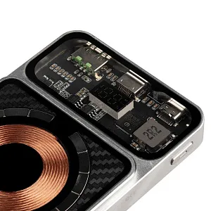 Компактный аккумулятор Cooper Prime — это не только премиальный корпус и притягивающая глаз электронная начинка под стеклом, но и быстрая зарядка QC 3.0 самого аккумулятора, и быстрая (минимум вдвое быстрее обычной) беспроводная зарядка гаджета, а также возможность зафиксировать аккумулятор на задней крышке телефона. На iPhone 12–15 он примагничивается без каких-либо дополнительных приспособлений, а для Android-устройств с беспроводной зарядкой и смартфонов iPhone 8–11 рекомендуем приобрести стикер-адаптер Magmate, чтобы максимально использовать это преимущество.