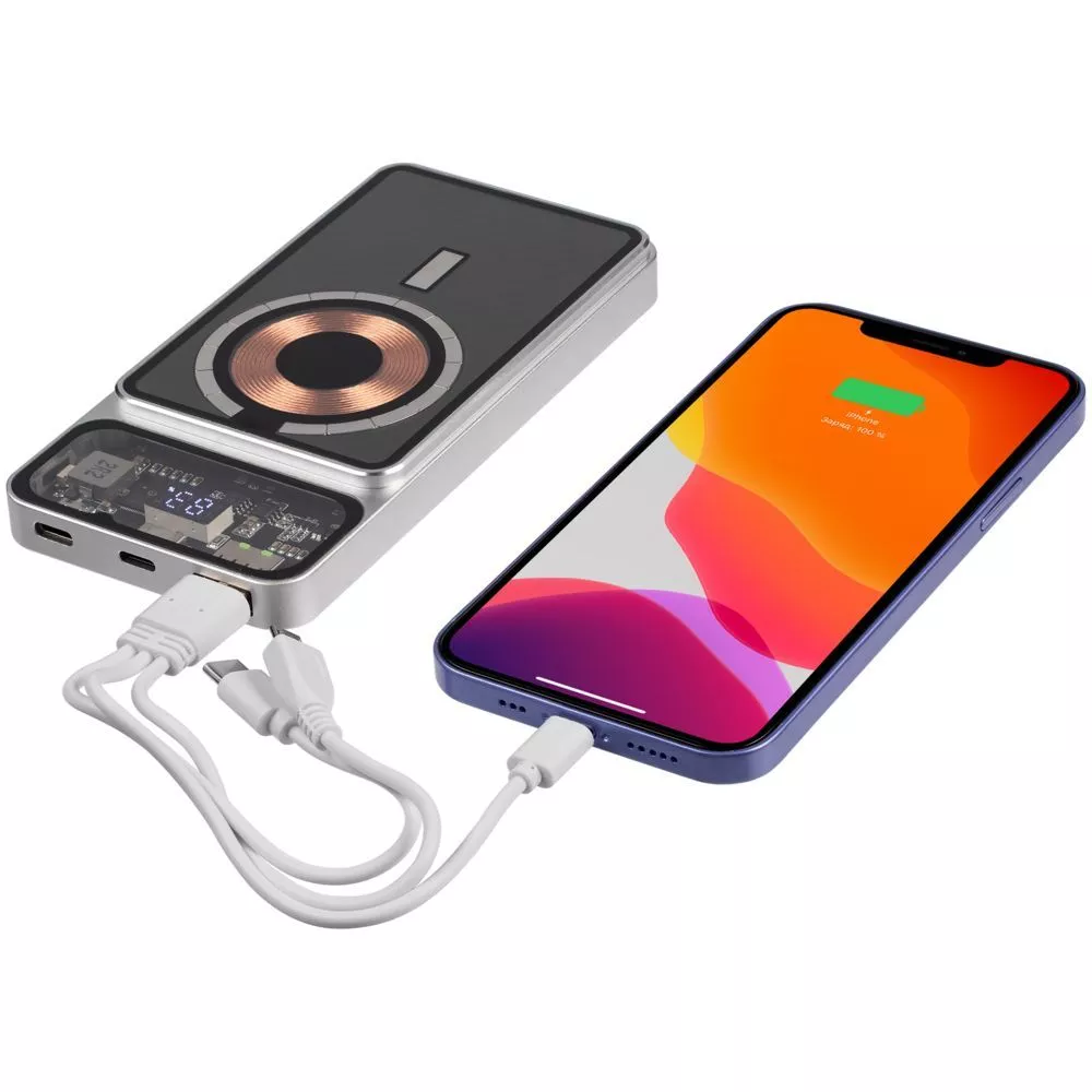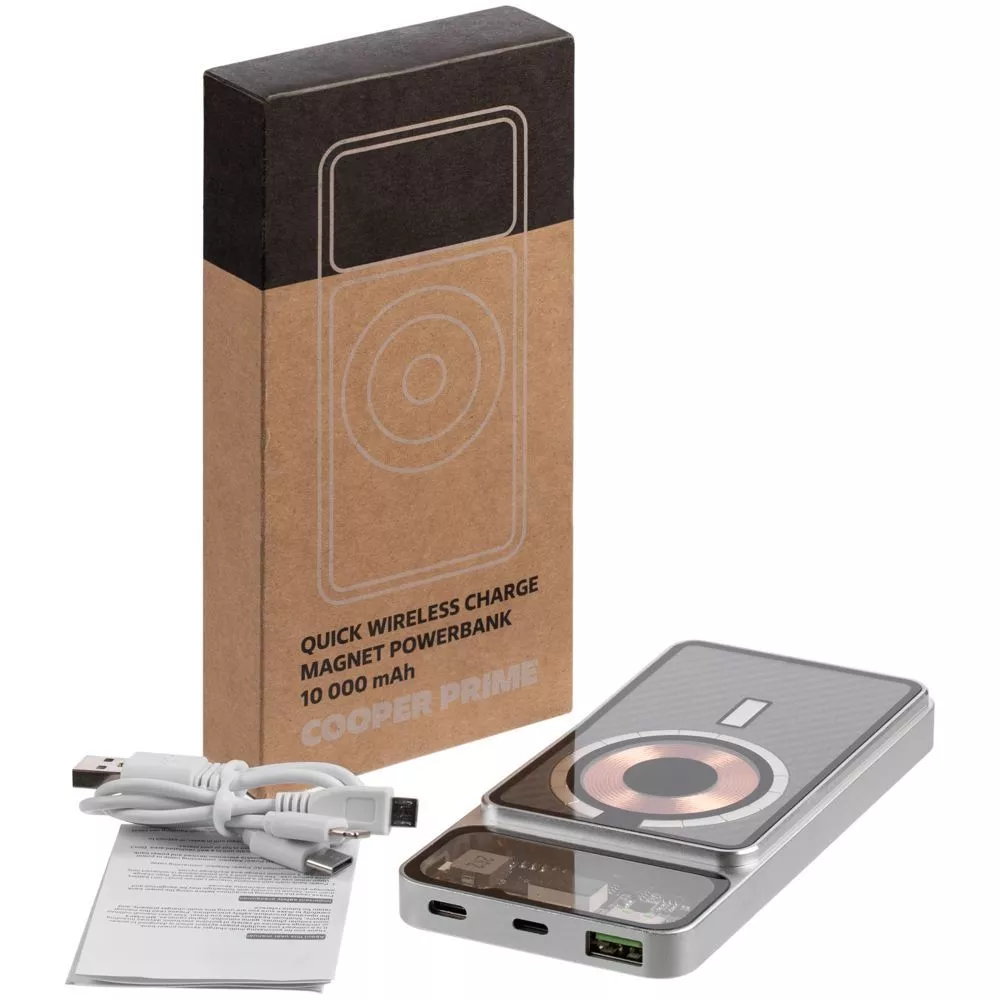 Компактный аккумулятор Cooper Prime — это не только премиальный корпус и притягивающая глаз электронная начинка под стеклом, но и быстрая зарядка QC 3.0 самого аккумулятора, и быстрая (минимум вдвое быстрее обычной) беспроводная зарядка гаджета, а также возможность зафиксировать аккумулятор на задней крышке телефона. На iPhone 12–15 он примагничивается без каких-либо дополнительных приспособлений, а для Android-устройств с беспроводной зарядкой и смартфонов iPhone 8–11 рекомендуем приобрести стикер-адаптер Magmate, чтобы максимально использовать это преимущество.