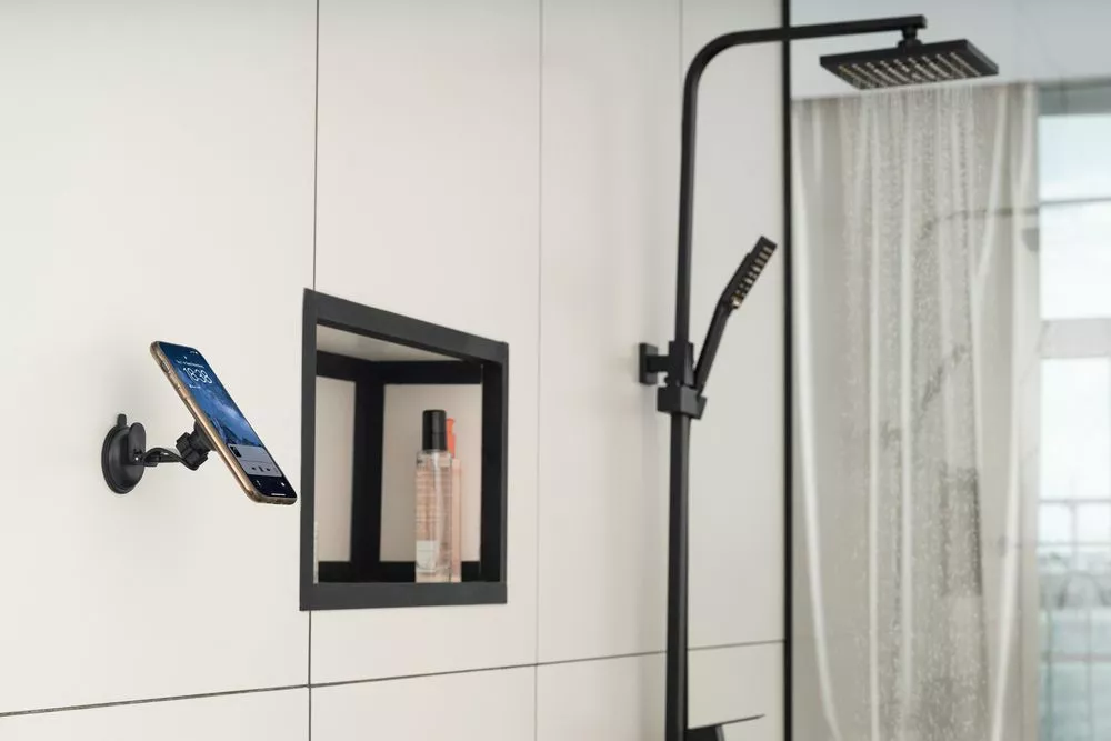 Держатель для телефона Winch крепится на присоске на приборную панель или лобовое стекло автомобиля.