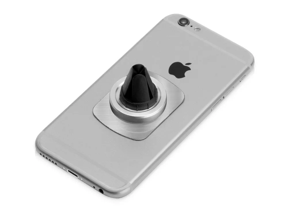Магнитный держатель для телефона крепится к вентиляционной решетке автомобиля по принципу булавки-пина: вам нужно просто воткнуть Magpin в решетку, где он плотно закрепится прорезиненными ножками. Самоклеящаяся стальная пластина идет в комплекте: ее вы прикрепляете к своему смартфону, чтобы затем использовать с магнитной частью держателя. - Удобная форма держателя - Прорезиненная поверхность держателя не царапает заднюю крышку смартфона - Прорезиненные ножки держателя обеспечивают плотное сцепление с решеткой - Держатель можно использовать с любой моделью телефона Гравировка (оптоволоконный лазер) (Без чернения) на данный товар осуществляется бесплатно. Оплачивается только настройка оборудования в размере 950 рублей на весь тираж.