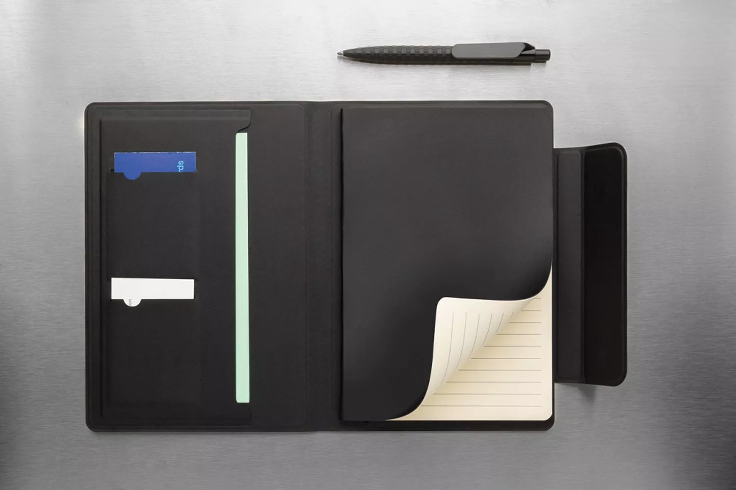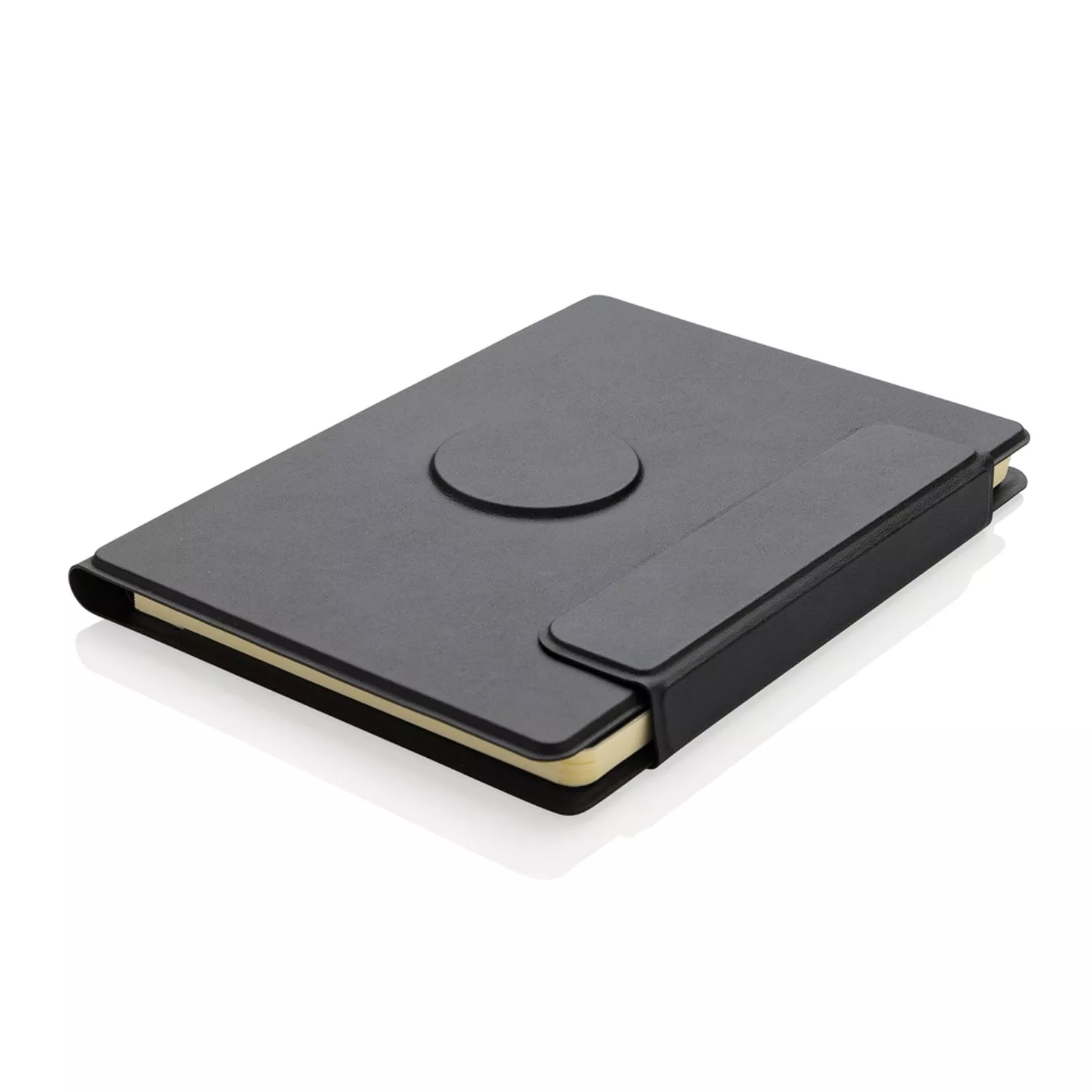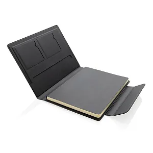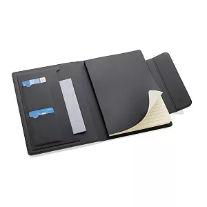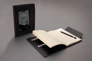 Органайзер Stuart формата А5 выполнен из переработанного полиуретана и оснащен магнитным держателем для телефона (подходит для смартфонов, поддерживающих функцию MagSafe). Внутри — блокнот формата А5 с линованными листами из кремовой бумаги, сертифицированной FSC® (64 листа плотностью 80 г/м²). Есть два отделения для визитных карточек и карман для документов. Оригинальный подарок для бизнес-партнеров и коллег.