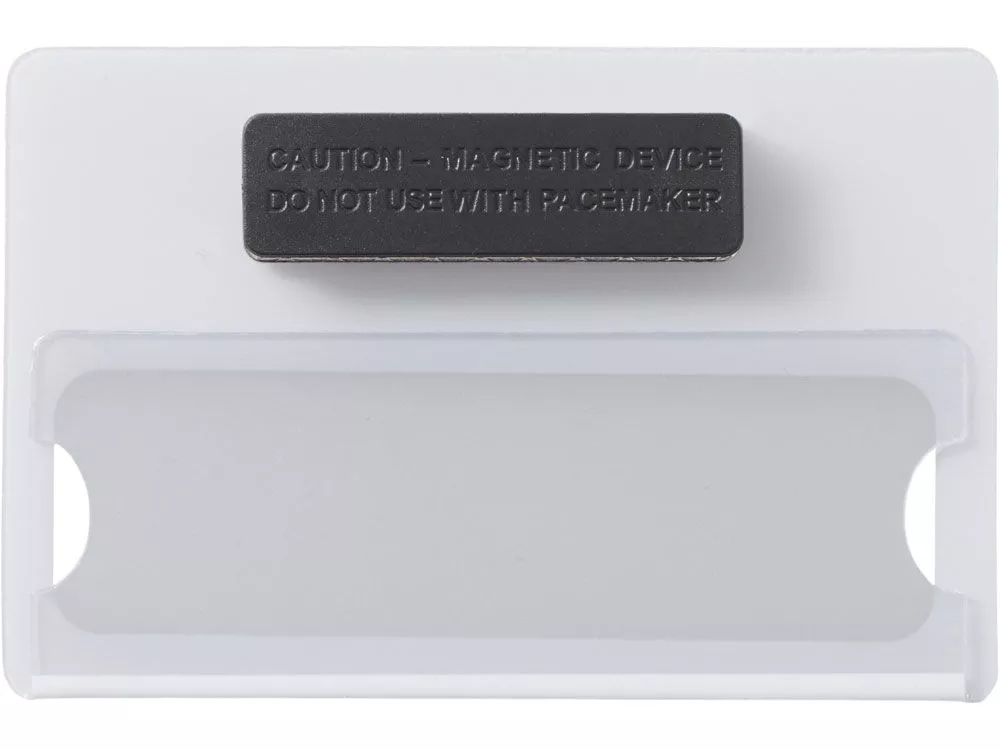 Прочный магнитный бейдж, изготовленный из пластика. Магнитное крепление позволяет быстро прикрепить и снять бейдж без лишних усилий и проколов на ткани.