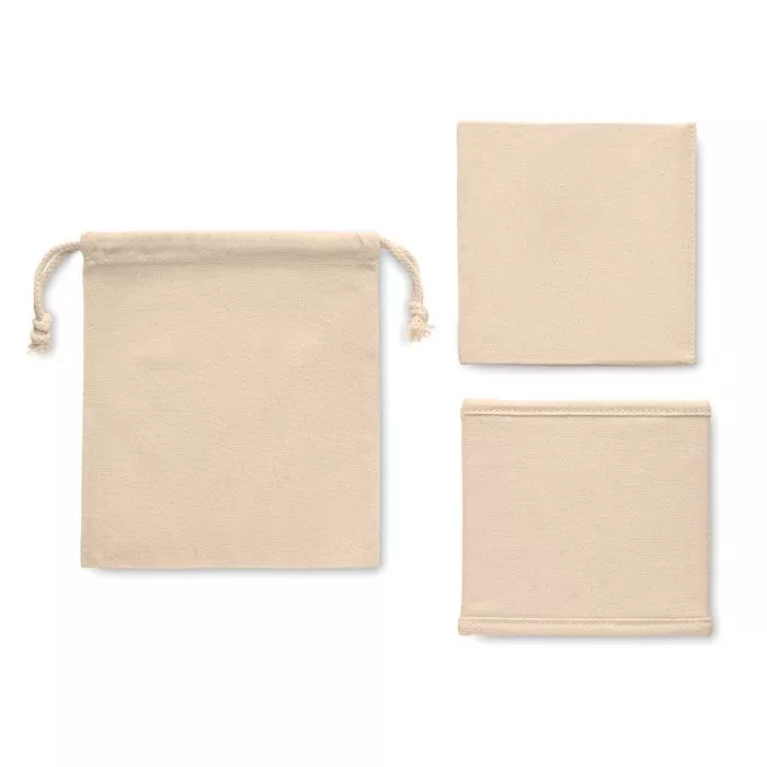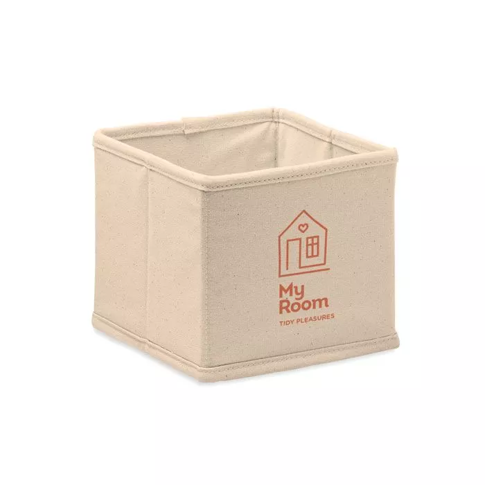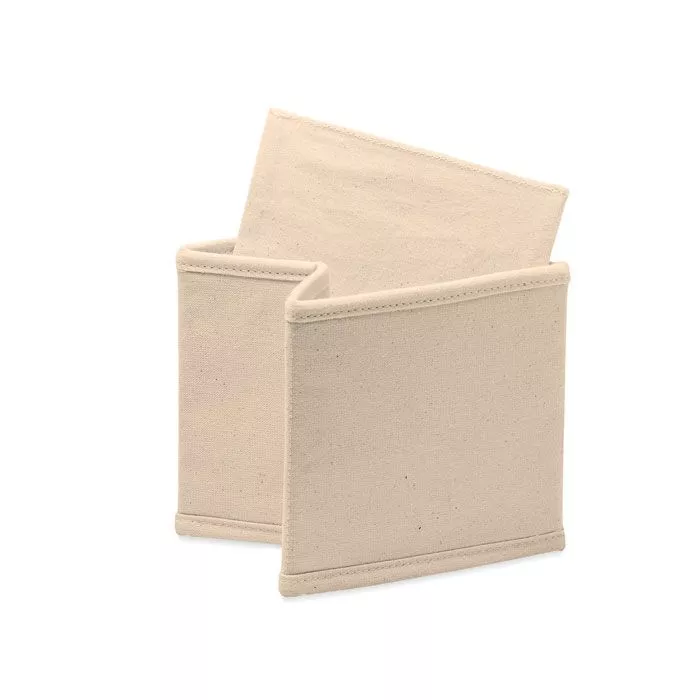 Маленькая складная коробка для аксессуаров или хранения из хлопка (220 гр/м²). Представлена в хлопковом (140 гр/м²) мешочке на шнурке.