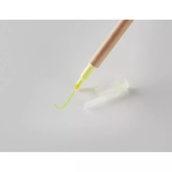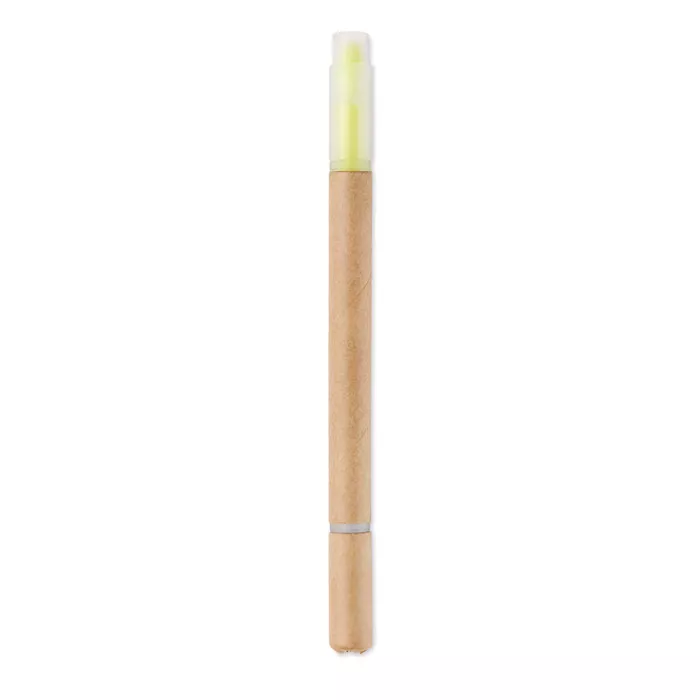 Ручка с маркером 2 в 1. Корпус картонный. Синие чернила, маркер желтый.