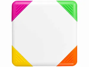 Квадратный маркер с плоским наконечником желтого, оранжевого, розового и зеленого цвета.