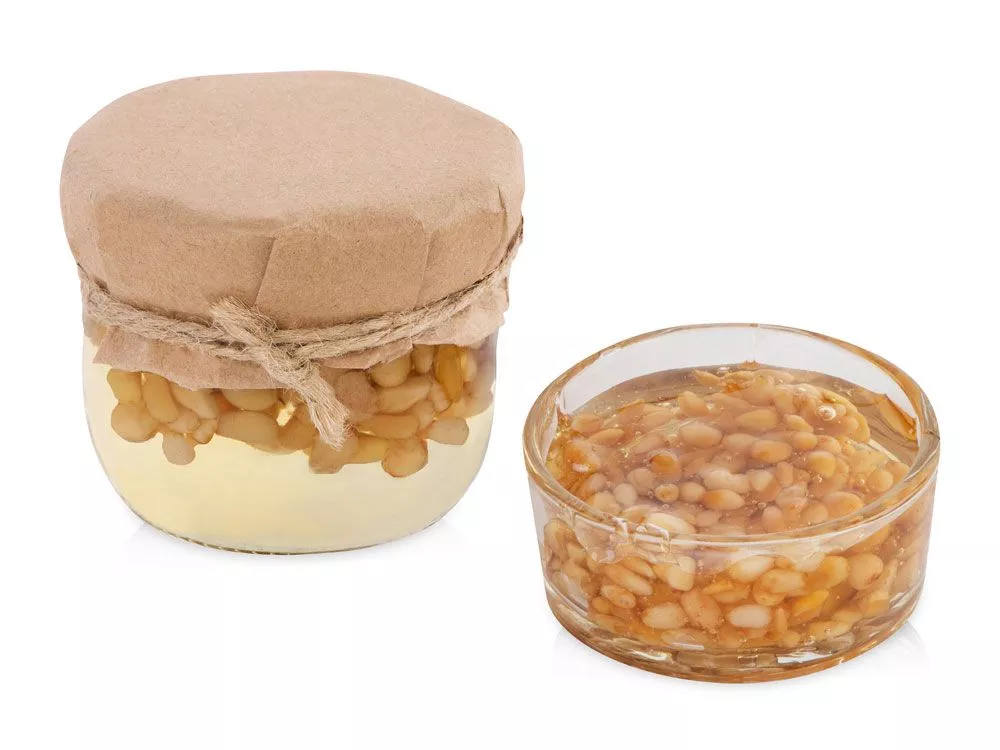 Мед и орехи прекрасно сочетаются друг с другом, образуя оригинальный и запоминающийся вкус. Медовый десерт с кедровыми орешками, не только вкусный, но и полезный, идеально подойдет для чаепития, поэтому подобный подарок можно также дополнить чаем. Так как продукт состоит из натуральных ингредиентов, возможно его засахаривание Заливка полимерной смолой (Смола) на данный товар осуществляется бесплатно. Оплачивается только настройка оборудования в размере 2461.54 рублей на весь тираж.