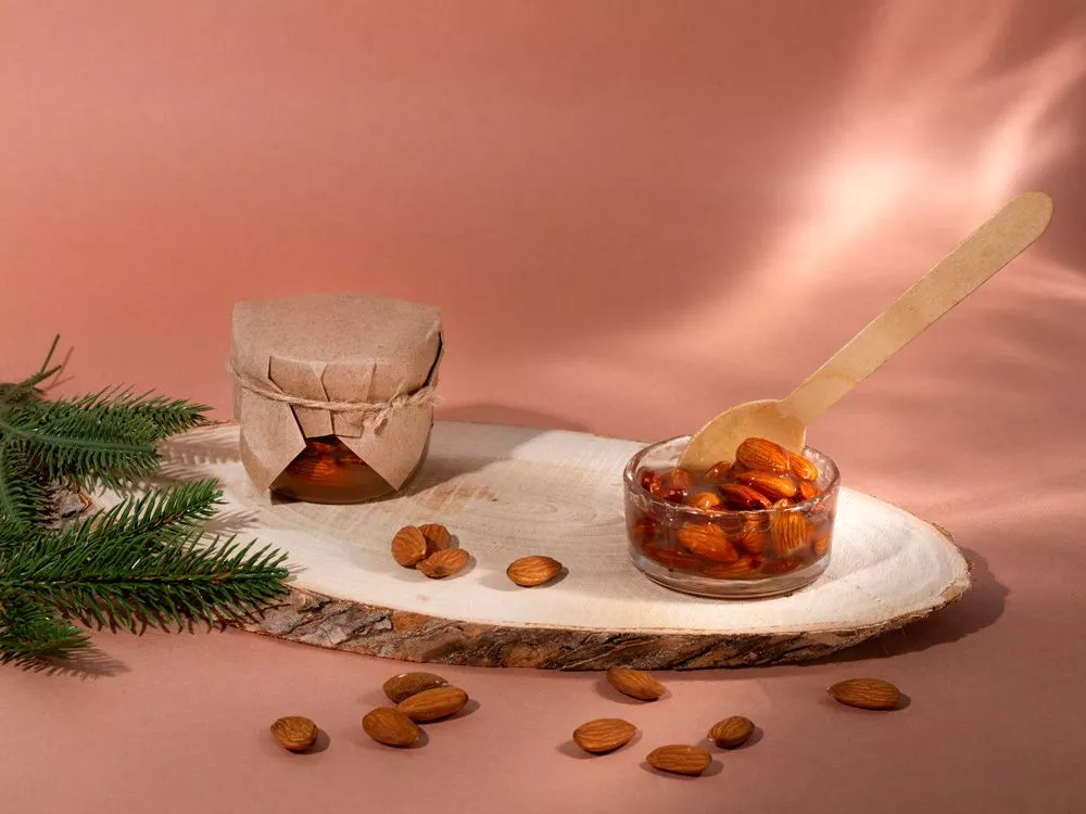Мед и орехи прекрасно сочетаются друг с другом, образуя оригинальный и запоминающийся вкус. Медовый десерт идеально подойдет для чаепития, поэтому подобный подарок можно также дополнить чаем. Так как продукт состоит из натуральных ингредиентов, возможно его засахаривание. Заливка полимерной смолой (Смола) на данный товар осуществляется бесплатно. Оплачивается только настройка оборудования в размере 3700 рублей на весь тираж.