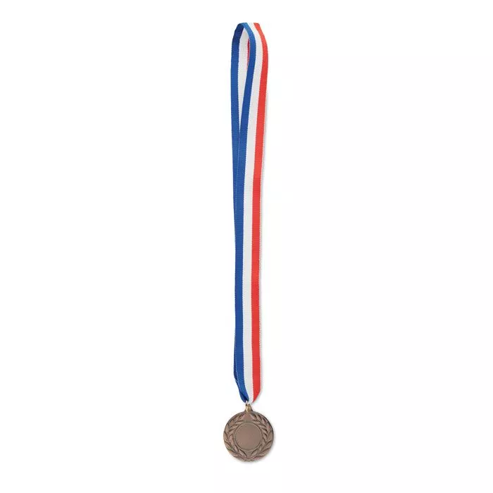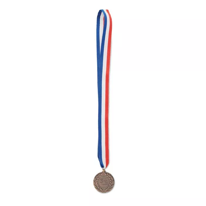 Медаль из железа с полиэстеровым ремешком синего, белого и красного цветов. Диаметр 5 см