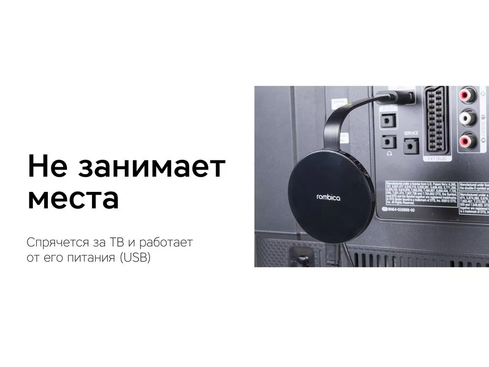 Медиастример позволяет в реальном времени передавать изображения, видео со звуком и презентации в высоком разрешении Full HD практически с любого смартфона, планшета или ноутбука на телевизор или проектор. Транслируйте фильмы, фото и приложения c мобильных устройств на ТВ. Поддержка iOS, Android, Windows, OS X Подключение через HDMI FullHD 1080p Улучшенный приём Wi-Fi за счёт выносной антенны Процессордвухъядерный ARM Cortex-A9. Аппаратный декодер Full HD 1080p H.264, H.265. Поддержка кодеков H.264, H.265, MPEG2, MPEG4, MP3, ACC, WMA, JPG, PNG. WiFi 2,4 ГГц, IEEE 802.11 b/g/n. Интерфейсы HDMI, micro-USB. Разрешения экрана Full HD 1080p. Совместимые ОСAndroid 4.4 и новее, iOS 8 и новее, Windows 8.1 и новее, macOS 10.10 и новее. Тампопечать (1 цвет (цветные изделия)) на данный товар осуществляется бесплатно. Оплачивается только настройка оборудования в размере 2300 рублей на весь тираж.