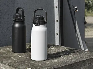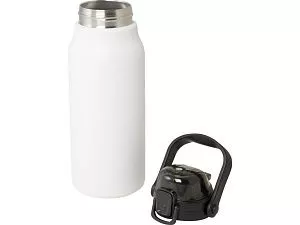 Эта большая бутылка из переработанной нержавеющей стали, сертифицированной RCS, позволит вам поддерживать водный баланс в течение дня и оставаться стильным. Медная вакуумная изоляция сохранит напитки горячими или холодными в течение нескольких часов, а благодаря складной ручке ее легко переносить. Бутылка герметична и имеет удобный механизм открывания с помощью кнопки. Объем составляет 1600 мл. Поставляется в подарочной коробке из переработанного картона. Recycled stainless steel, Recycled PP Plastic. Packaging: FSC Mix Credit P5.1 CU-COC-877277.