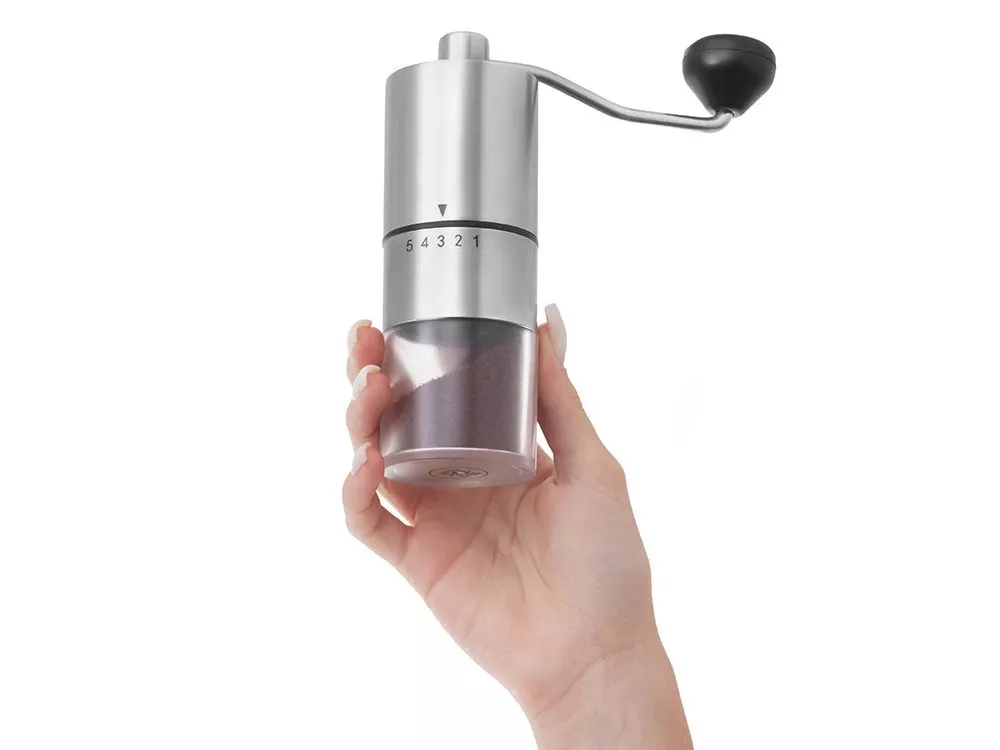 Компактная и элегантная механическая кофемолка Alegria для настоящих ценителей. Корпус из нержавеющей стали не только стильно выглядит, но и обеспечивает долговечность в использовании. Вместимость до 70 мл — оптимально для одной-двух порций свежемолотого кофе. Ручной механизм позволяет контролировать степень помола, сохраняя аромат и вкус зерен. Идеальна для дома, офиса или путешествий.
