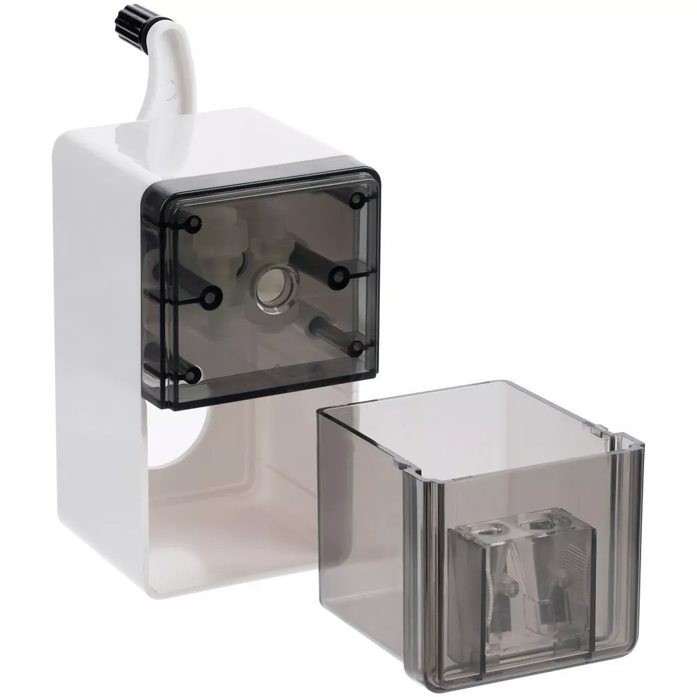 Вращающийся роликовый нож обеспечивает быструю и острую заточку карандашей диаметром до 8 мм. Точилка оснащена переключателем степеней заточки, что позволяет качественно заточить как цветные (с более тупым углом заточки), так и чернографитные карандаши. Также точилка оборудована прозрачным контейнером для стружки, который позволяет визуально контролировать уровень заполнения, и дополнительной ручной точилкой внутри контейнера для карандашей большего диаметра.