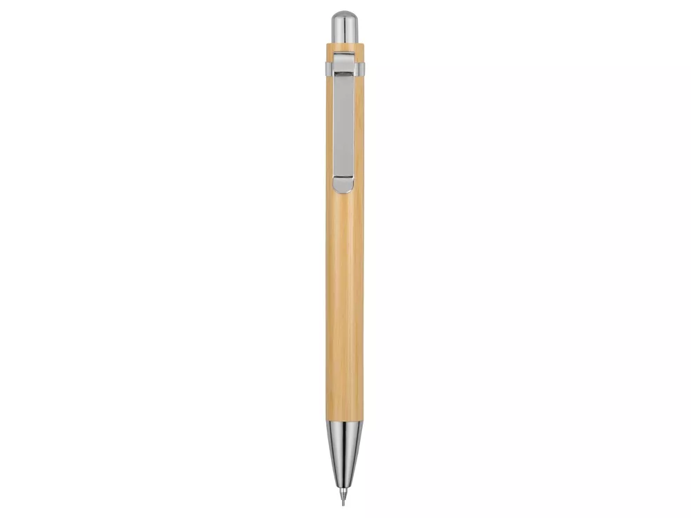 Механический карандаш Bamboo с нажимным механизмом. Корпус ручки изготовлен из экологически чистого материала – бамбука. Наконечник и кнопка пластиковые, клип из хромированного металла. Металлический узел полностью убирается внутрь. Легко заправляется стандартными стержнями 0.5 мм.